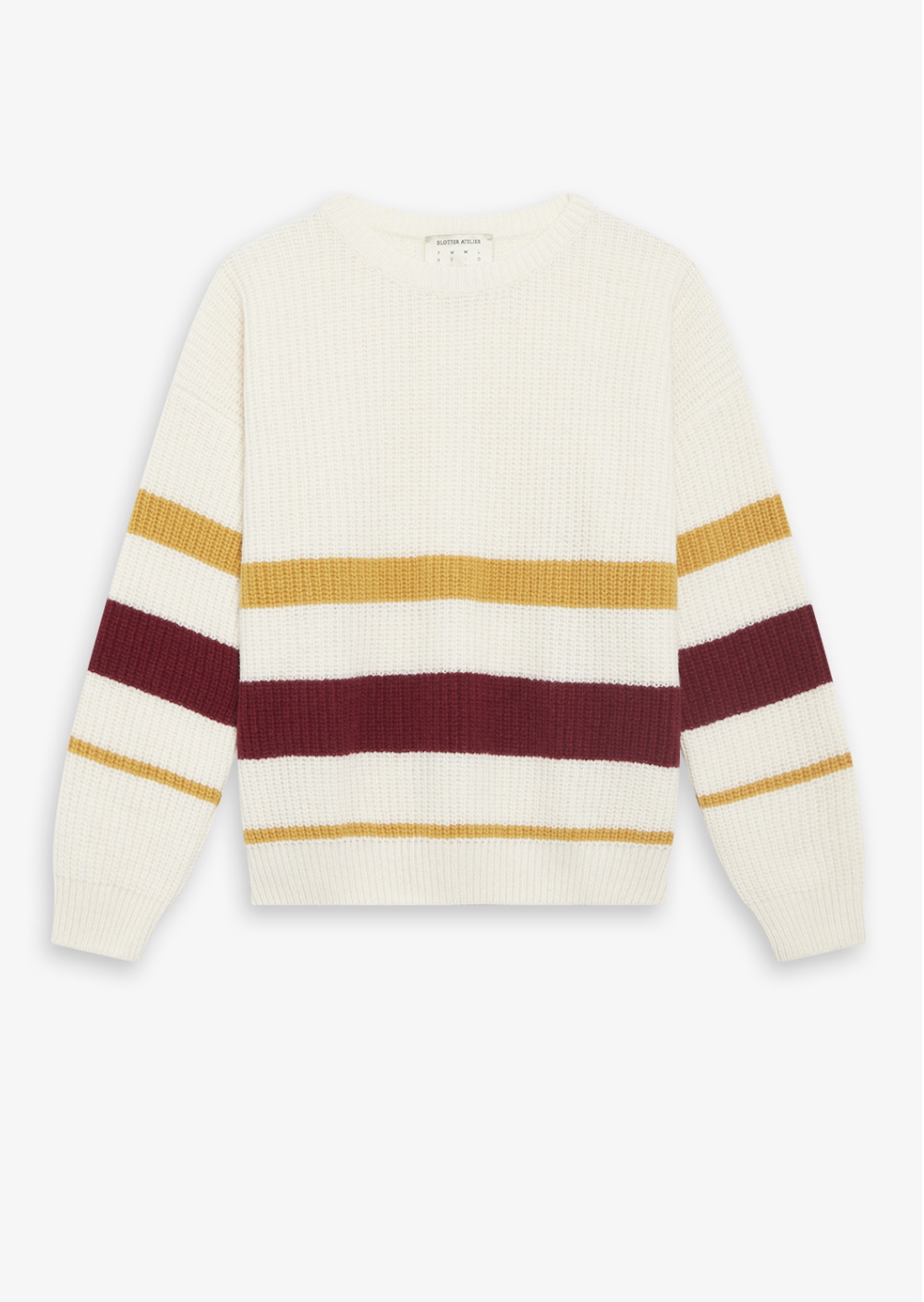 Pull 90% Laine d’agneau 10% nylon côtelé, filature Italienne.Encolure arrondie, bord côtes col, hanches et poignets.Conçu à Metz, fabriqué au Portugal.Entretien : Lavage à la main, chlore interdit, repassage doux.Livraison : France > J+3 / U.E > J+5 / Hors U.E > J+7