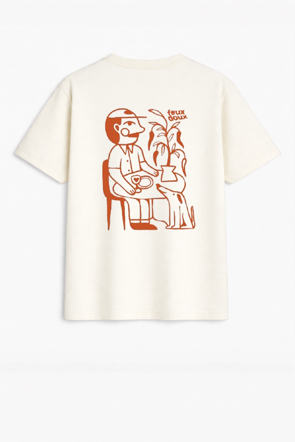 Encolure arrondie, finition ourlet surpiqué, motif « TABLE »