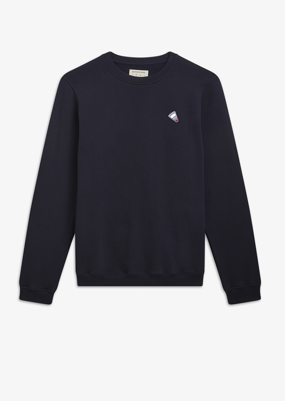 Encolure arrondie, bord côtes hanches, col et poignets, broderie VOLANT en relief.