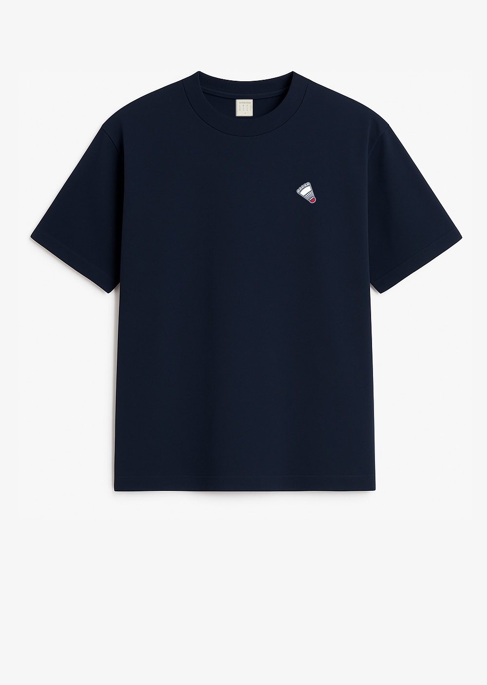 Encolure arrondie, finition ourlet surpiqué, broderie VOLANT PATCH.